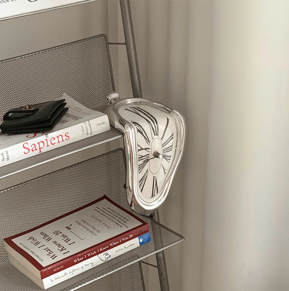 Bring a touch of surrealist art to your home or office with this Abstract Melting Clock. inspired by iconic surrealist paintings. Designed as a bold. abstract timepiece. this clock effortlessly drapes over desks. shelves. or tables. creating the illusion of a melting form.