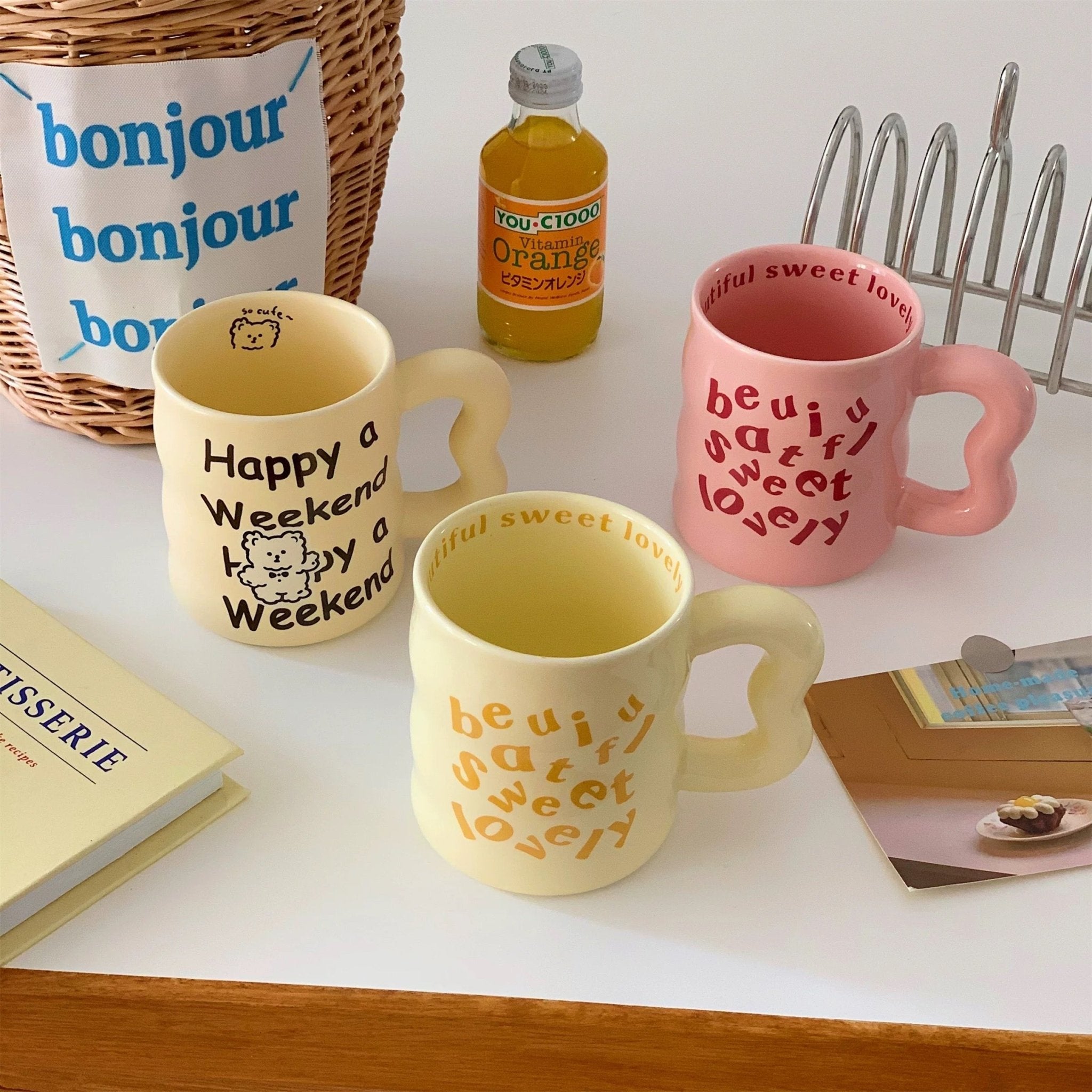 Sip your favorite beverages in style with our Aesthetic Ceramic Mug. designed with a cute and modern look. Available in pink and yellow. these adorable mugs are perfect for coffee. tea. or milk. Not only functional. but these mugs also add a touch of aesthetic decor to your kitchen or home office.