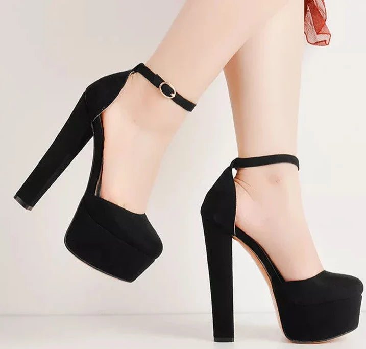 Ankle Strap Round Toe Platform Heeled Shoes