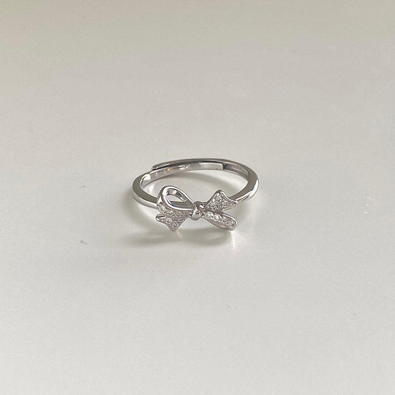 This ring is a testament to the beauty of pure 925 sterling silver. crafted into a bow tie shape and adorned with cubic zirconia that sparkle brilliantly.