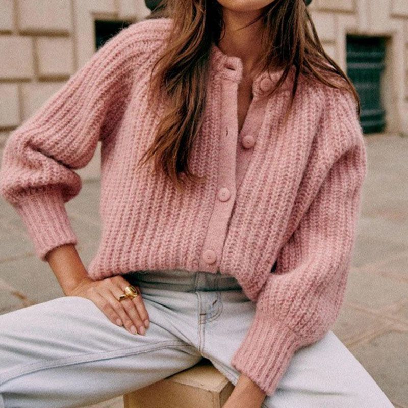 Design: Ballon Sleeve. Open Front. Buttons Loose. Oversized. Long Sleeves. Ribbed Knitting. Baggy Sleeve & Casual.