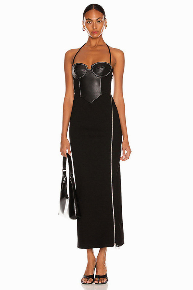 If you're looking for a dress that will make you feel sexy and attractive. look no further than our Halter Maxi Dress in Black. This dress is designed to showcase your beautiful figure with its waist-in design. The unique zipper design adds a touch of glamour. making you the center of attention wherever you go. The classic black color adds a sense of sophistication and elegance to your look.