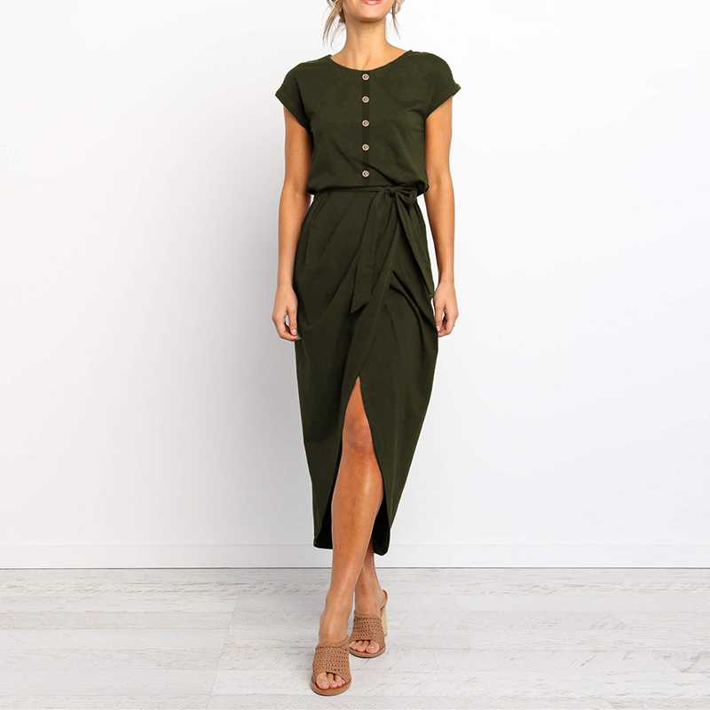 Design:Casual. Short Sleeve. Waist Tie. Knot. Split. Midi Length and Formal Style.