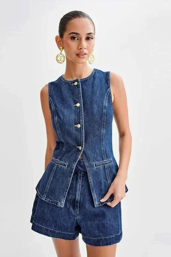Two-Piece Casual Denim Set | A stylish and comfortable duo. this denim set is ideal for laid-back outings. Effortlessly chic. it ensures you look great no matter where you go.