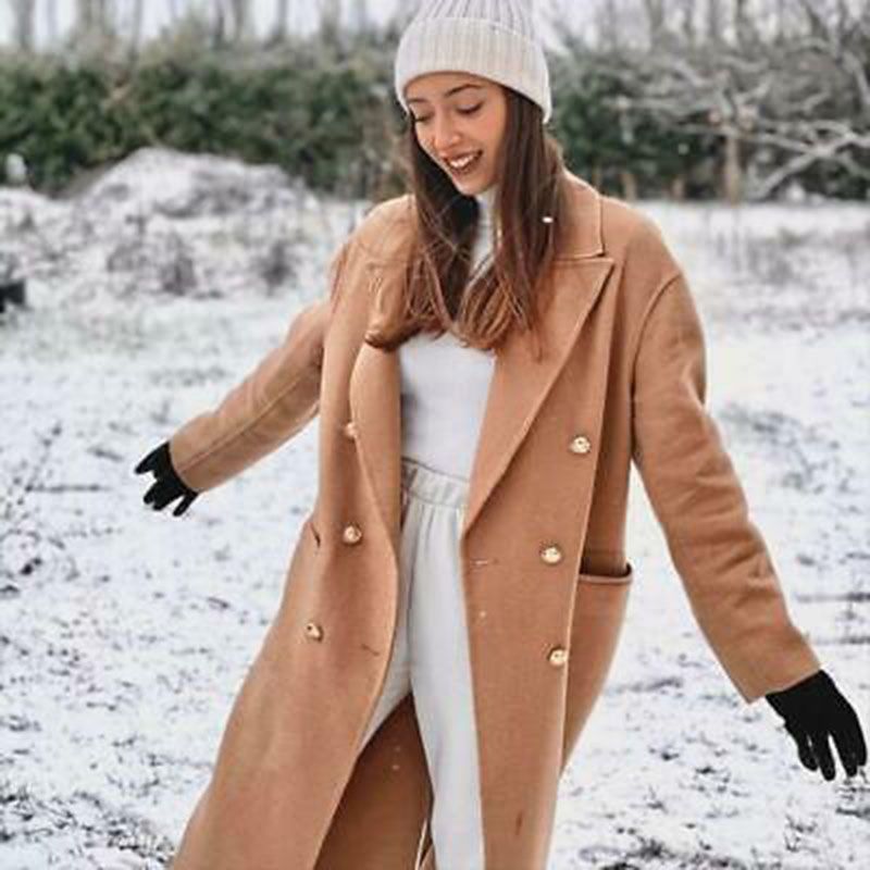 Elevate your outerwear with this classic cashmere wool blended belted long coats. Meticulously made from blended wool. delicately cut for a streamlined effect. The beige double breasted long wool camel coat womens is polished enough for a formal affair. a classic basic for street oufit in winter & spring.