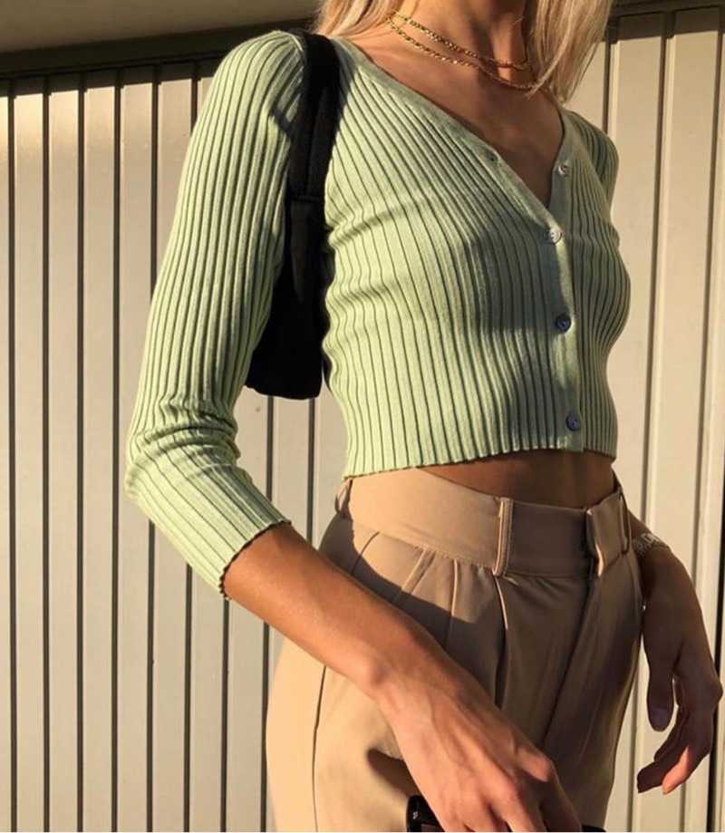 This button down crop tee features elastic ribbed fabric. goog stretch. slimming v neck. crop top. button down and ribbed fabric. One of the crop tops for any body type. for going out. underneath. tean well with denim shorts. pants. shorts. skirts in street styles and summer outfits.