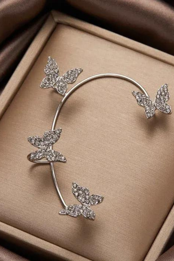 The Celestia Butterfly Ear Cuffs offer a delicate yet bold touch to your ears. Featuring intricately designed butterflies. these cuffs hug your ears with a secure yet comfortable fit. Crafted without the need for piercings. they are lightweight and allergy-free. perfect for all-day wear while adding a whimsical charm to any look.