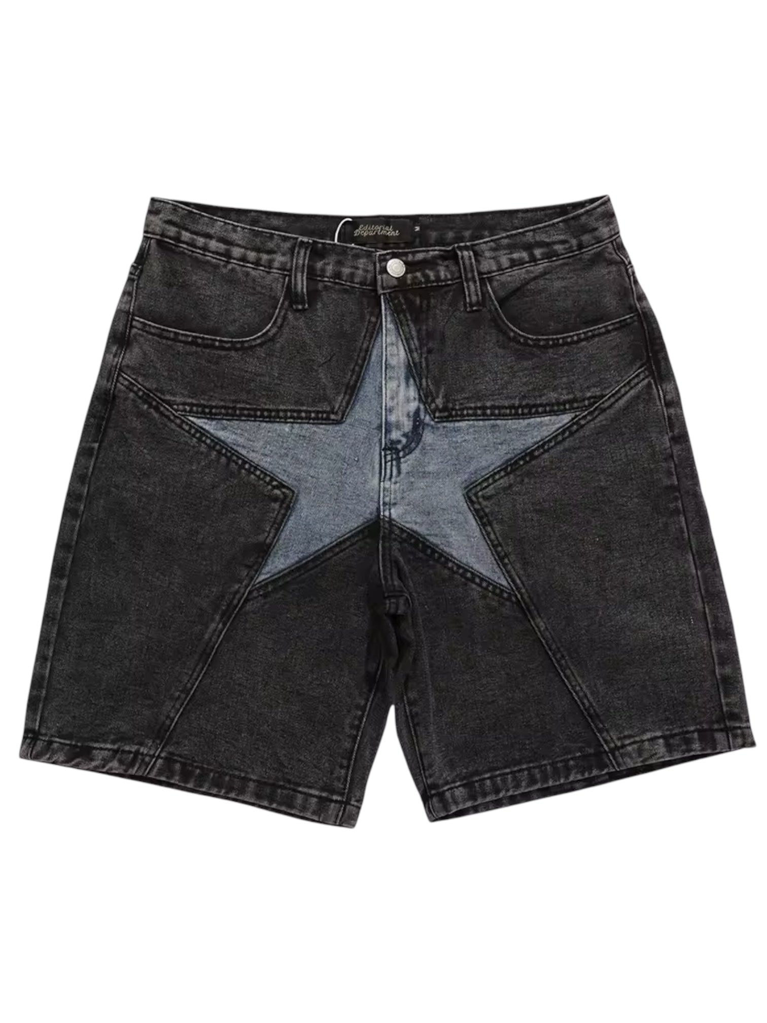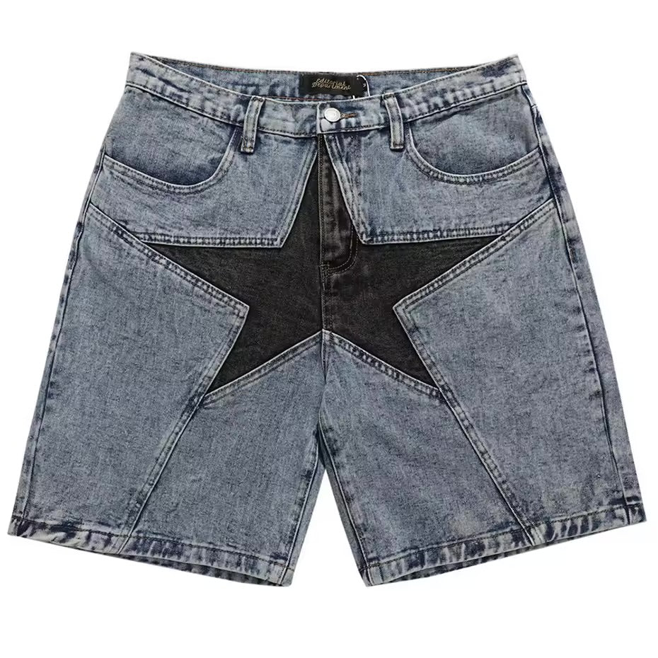These denim shorts have a patchwork design of a central star which gives off the Harajuku trendy look.