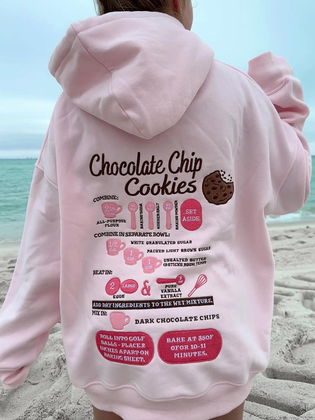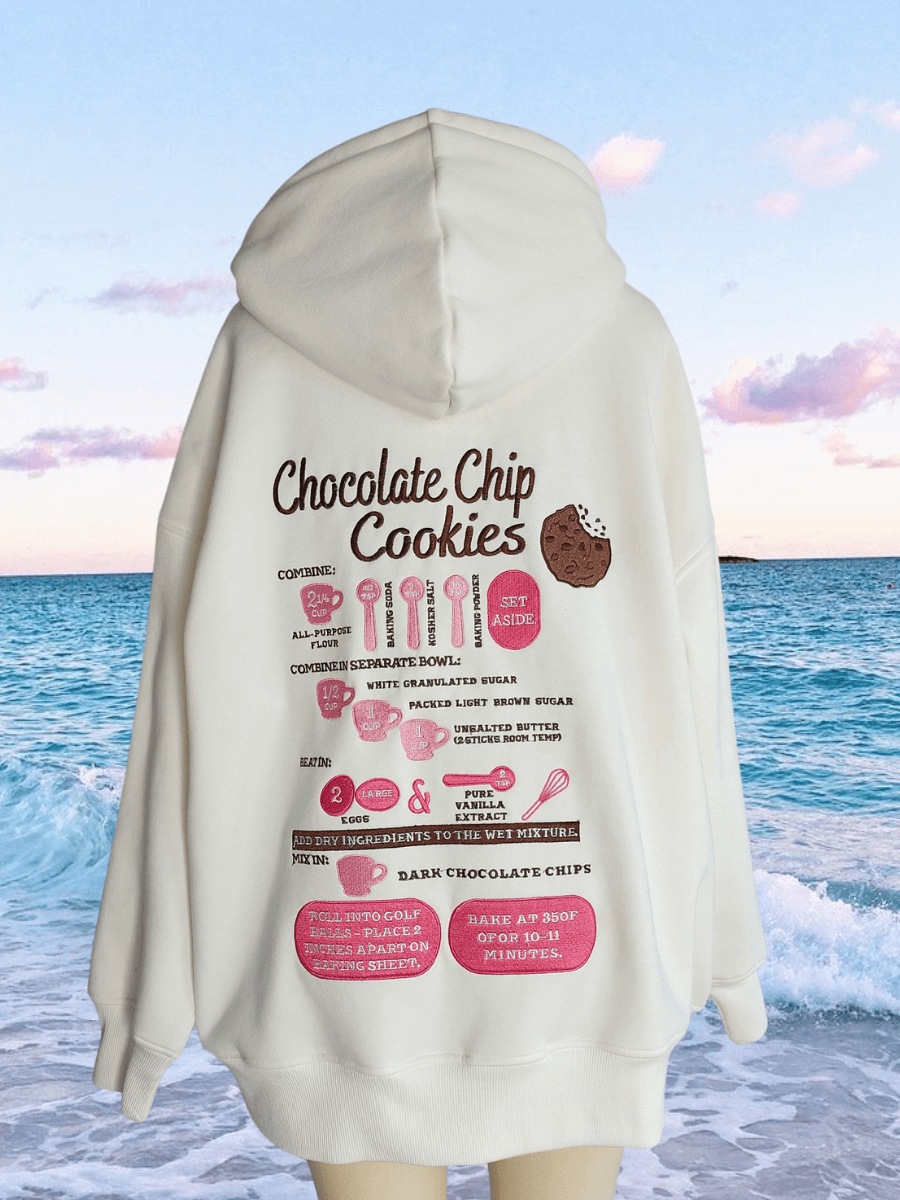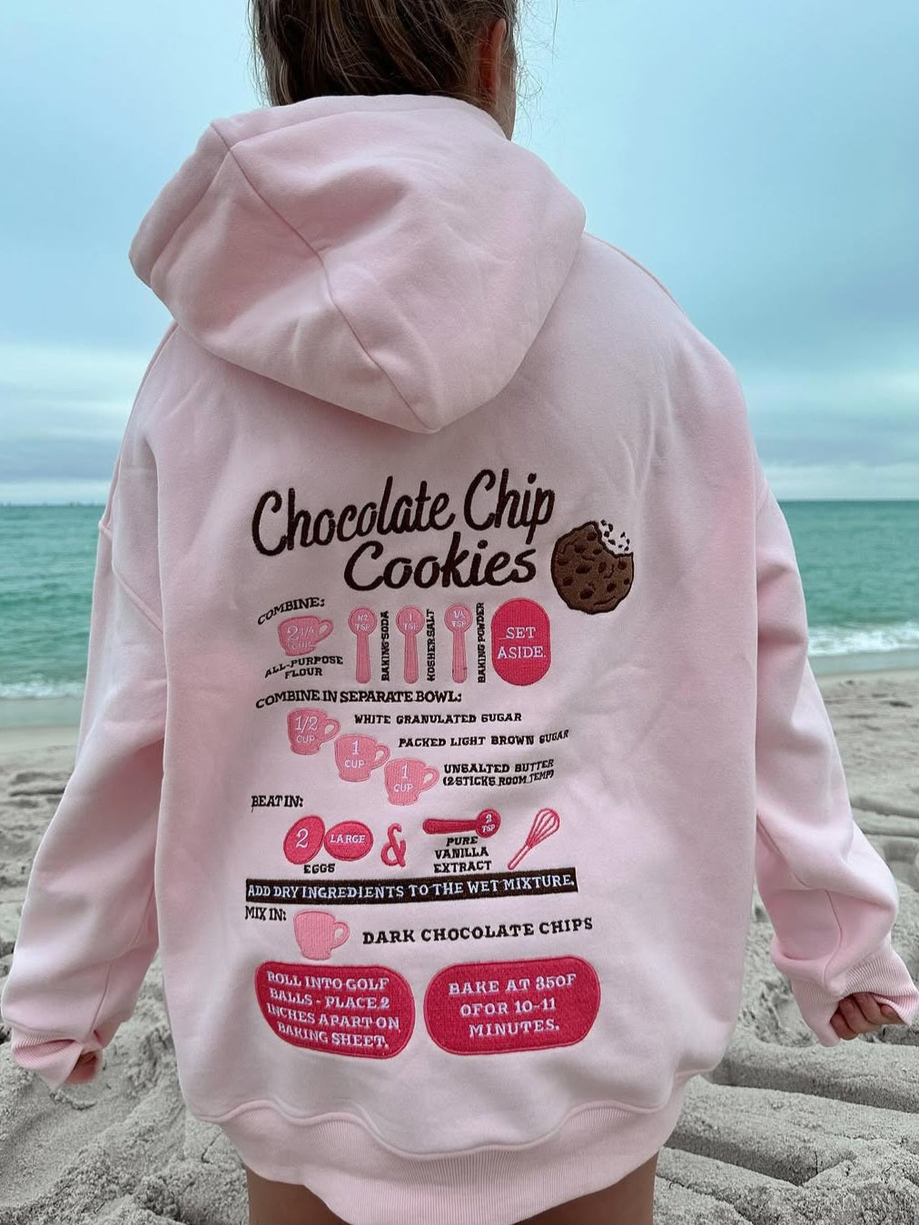 Indulge in your love for sweets with our Chocolate Chip Cookie Recipe Embroidery Hoodie. This playful hoodie is sure to make a delicious statement. showing off your baking skills and sweet tooth in style.