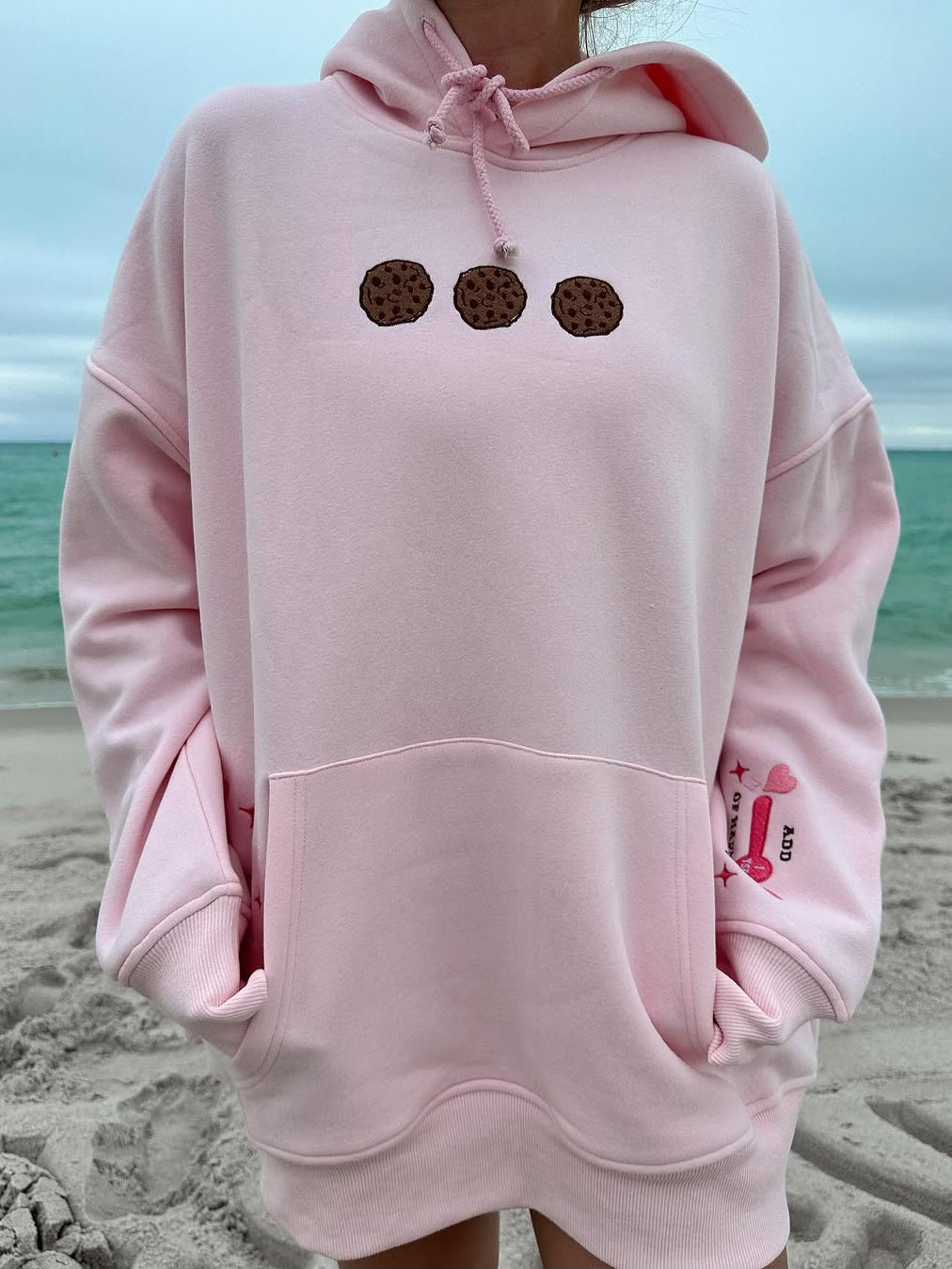 The oversized fit adds a touch of style to your everyday wear. And with a fun cookie recipe embroidered on the back. you'll look and feel sweet all day long.