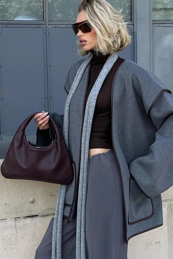 This Women's Stylish Drawstring Coat combines comfort. practicality. and chic design. making it the perfect outerwear choice for the modern woman. With a loose-fitting silhouette. long sleeves. and a V-neck design. this versatile coat is ideal for layering over your office attire while maintaining a fashionable. professional look.