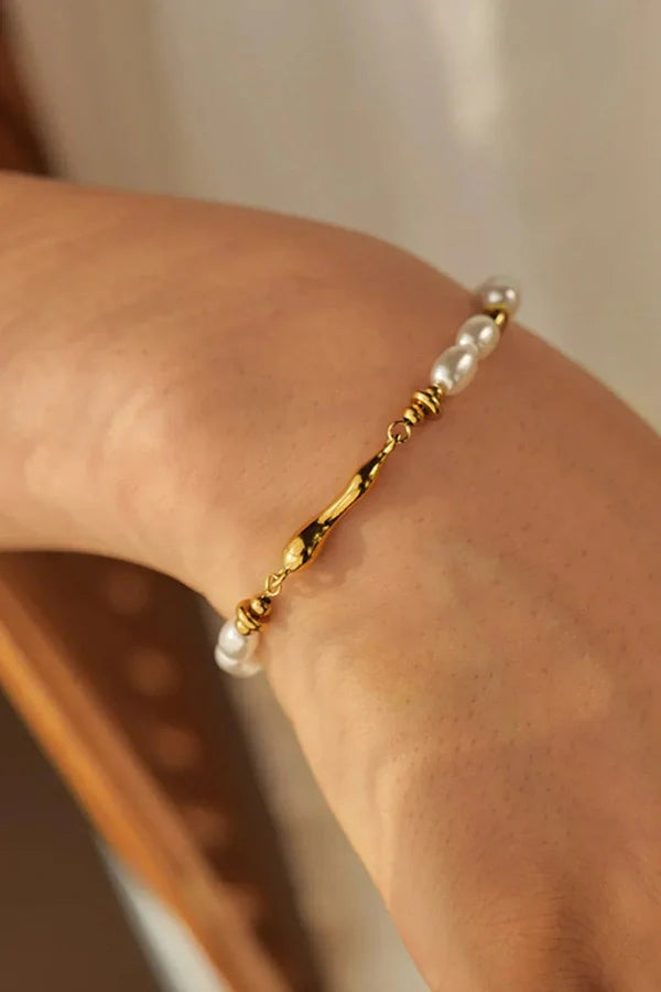 The ClassiPearl bracelet elegantly blends the timeless beauty of pearls with the modern strength of titanium steel. featuring 40% pearls and 60% durable titanium. This refined piece exudes sophistication and versatility. making it the perfect accessory to elevate any outfit. Whether worn for special occasions or as an everyday statement. the ClassiPearl bracelet adds a graceful touch to your jewelry collection.