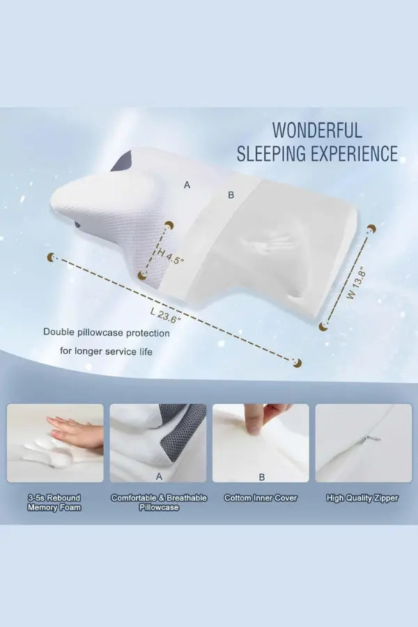 Crafted with premium. breathable materials. it keeps you cool and cozy throughout the night. Its innovative design not only alleviates neck pain but also promotes deep. restorative sleep for enhanced energy and well-being. Ideal for anyone seeking quality rest. the CloudNestâ„?Pillow helps you wake up feeling refreshed and pain-free.