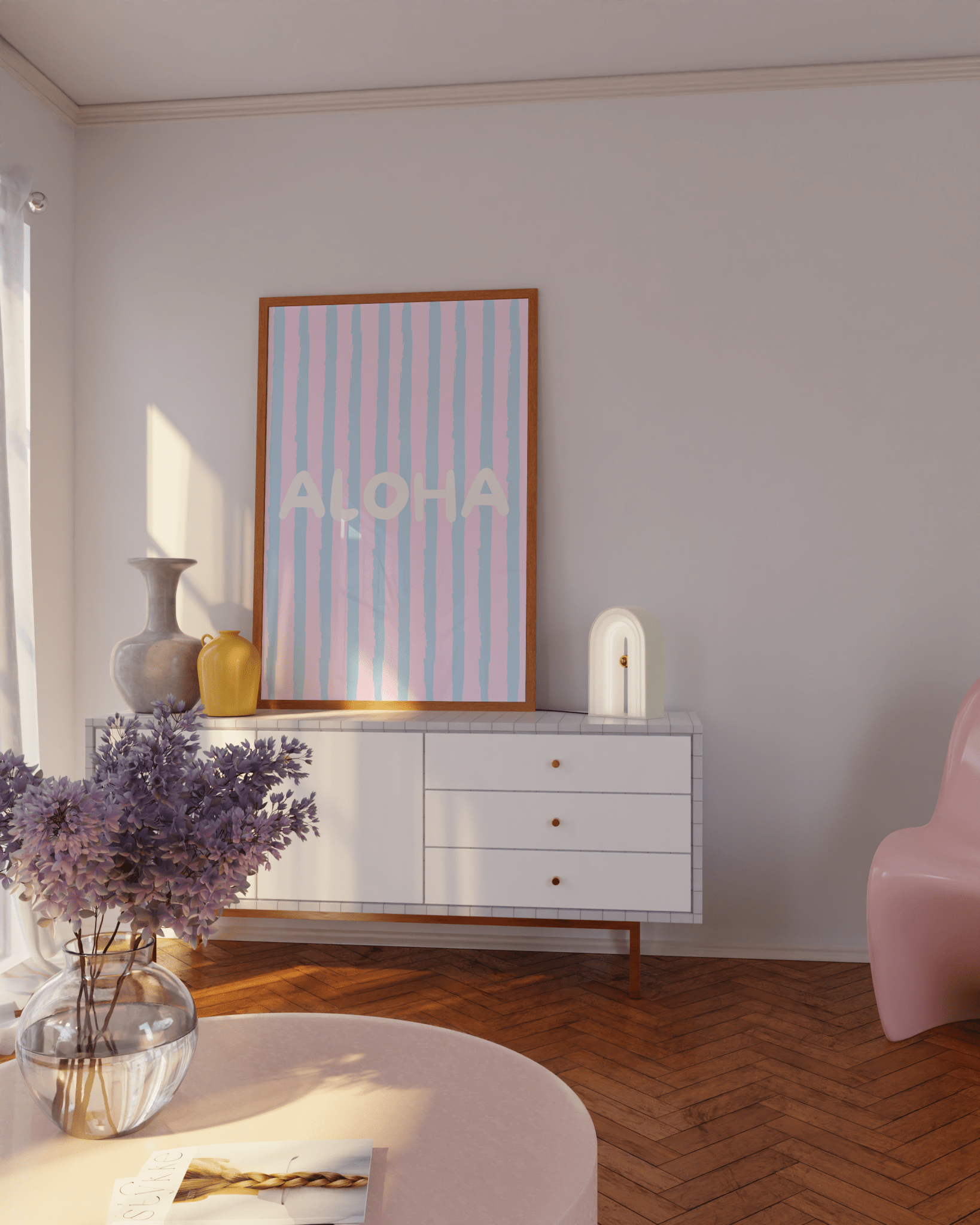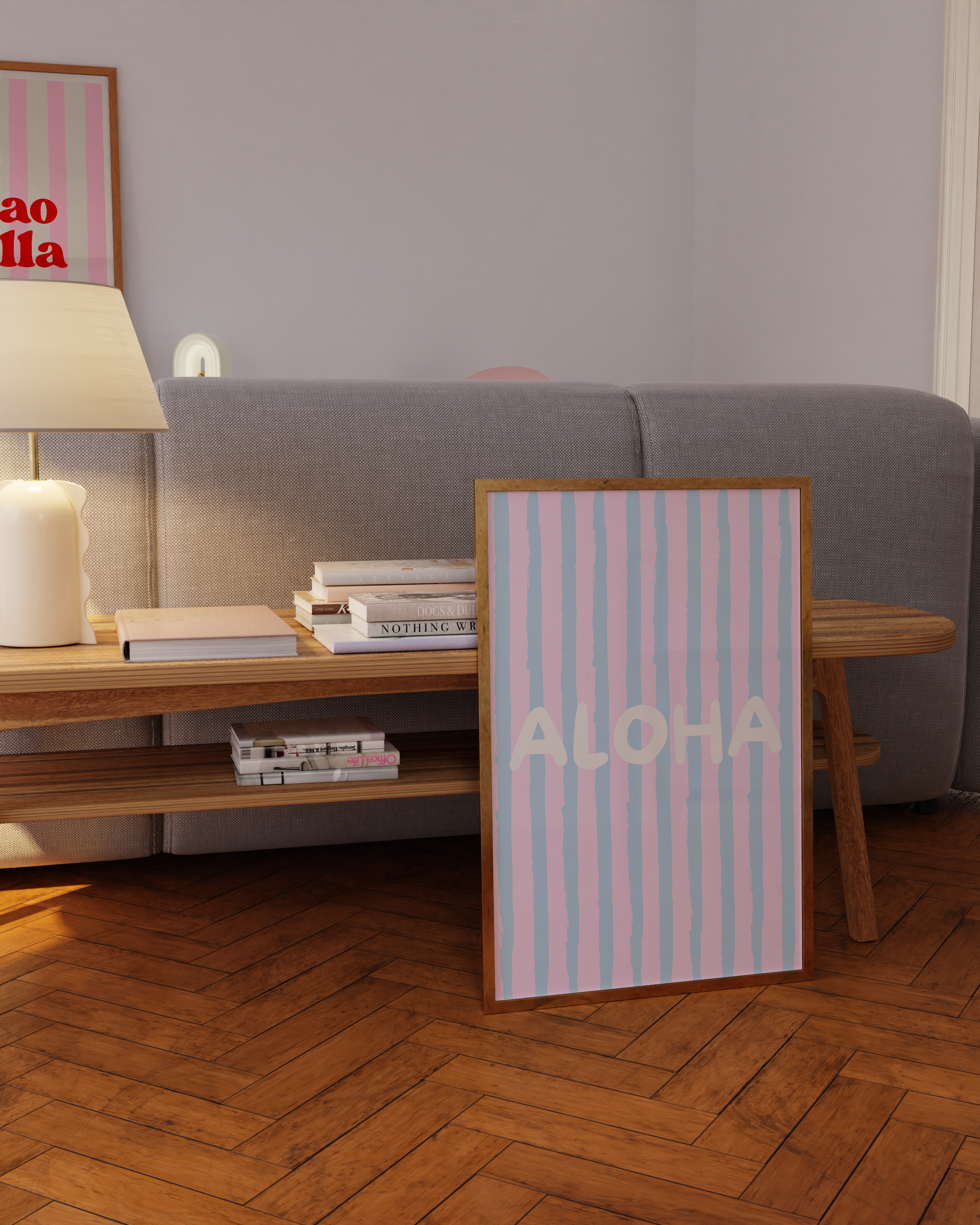 Bring the sunshine inside with this dreamy Aloha Summer Poster Set ☀ï¸? This 3-piece digital print collection features: a striped pastel “ALOHAâ€?typography poster. a realistic trio of ocean shells in soft tones. and a beachy blue sketch of chairs under an umbrella. Perfect for coastal wall decor. dopamine-style dorm rooms. beach cottages. or summer apartment makeovers.
