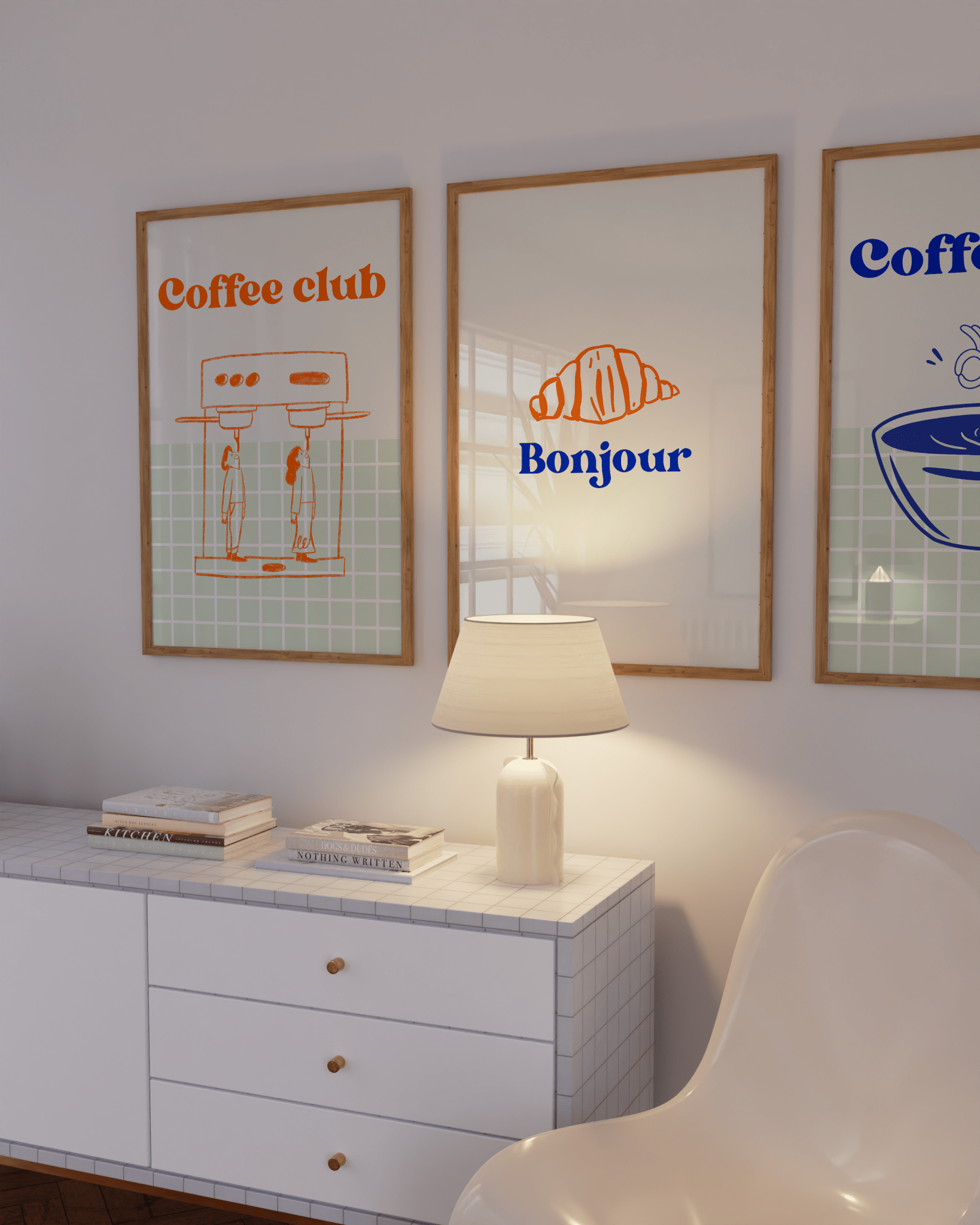 Bring the charm of a Parisian coffee bar into your home with this playful. retro café poster set. Designed for dopamine kitchens. cozy barista corners. or colorful apartment walls. this 3-print digital download features hand-drawn coffee mugs. moka pots. croissants. and bold “Coffee Clubâ€?typography. Whether you're curating your café nook or gifting a cute print set to a coffee lover. this set is a vibe. ☕ðŸ¥?/p>