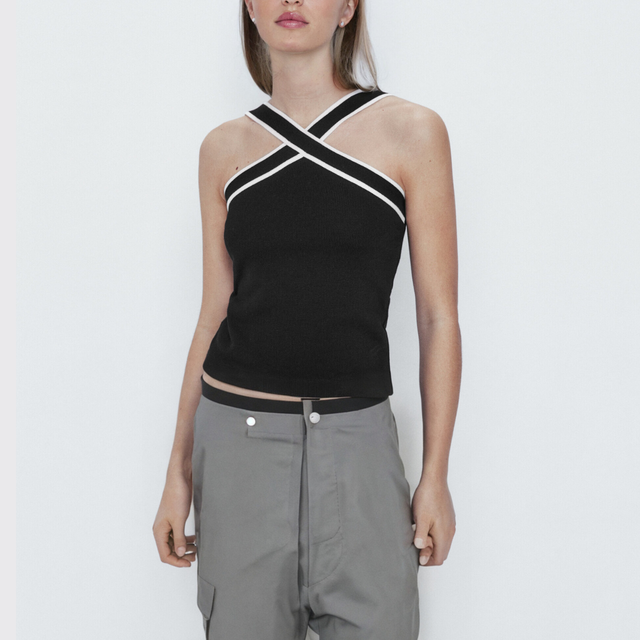 This versatile stretchy ribbed tank can be worn with either side facing forward giving two different looks to the garment. I's V-neck and solid color give it a unique and stylish look. It's a classic top with a hind of a sporty aesthetic which makes it suitable for both day and night wear.