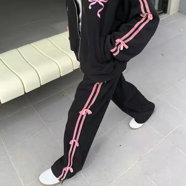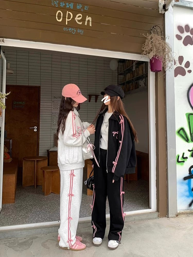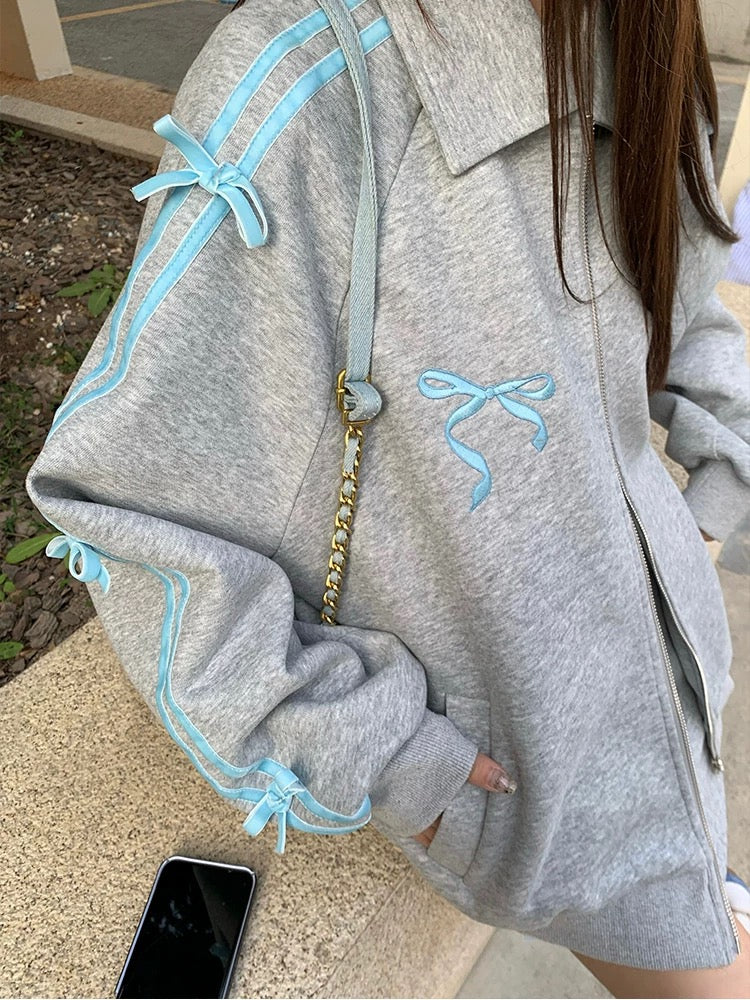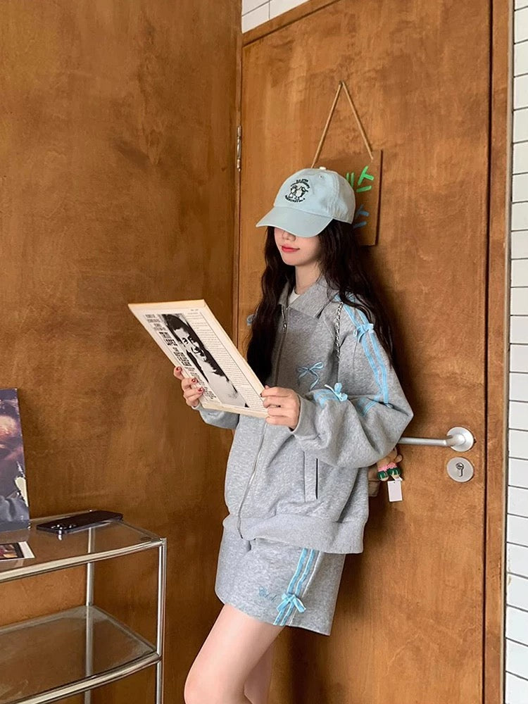 Elevate your wardrobe with this Coquette Bow Hoodie and Skirt Set. blending Y2K fashion with a soft girl aesthetic. The set features a sweet long sleeve zipper hoodie with a stylish contrast trim and bow decor. perfect for spring and fall. Paired with a matching skirt. this outfit delivers a cute. kawaii vibe ideal for casual wear. parties. or even school.