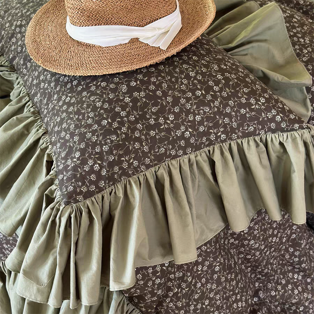 This olive garden bedding set effortlessly marries rustic charm with delicate elegance. It blend seamlessly with wooden furniture and natural accents. creating a peaceful. earthy oasis for relaxation and restful sleep.