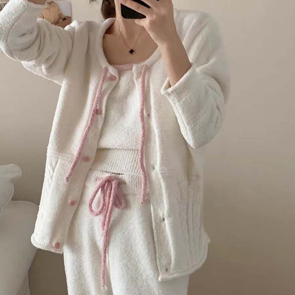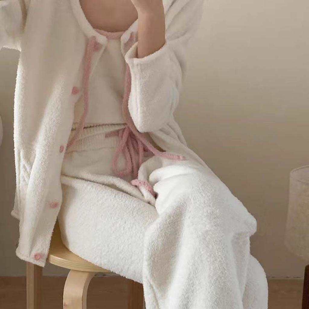 You're in for a treat with this incredibly soft pajama set! The 3pcs sleepwear. designed for ultimate comfort. it's perfect for those evenings when you just want to relax and unwind. The plush fabric wraps you in warmth. making it feel like you're wrapped in a cloud.