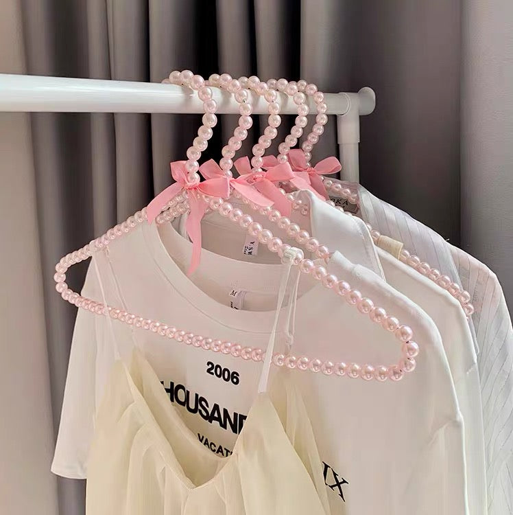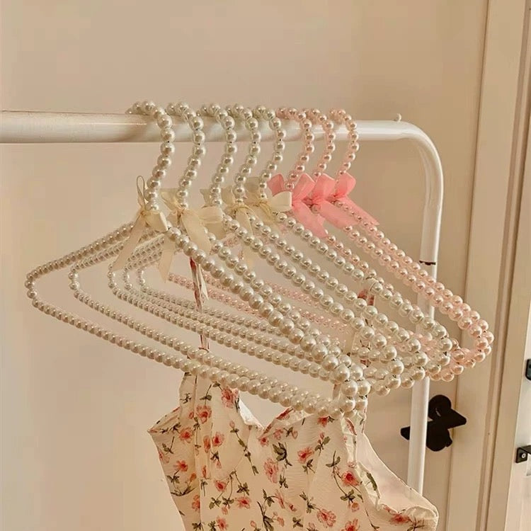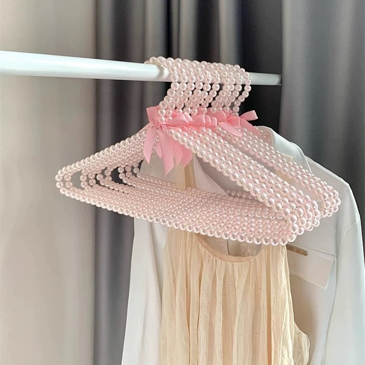 Discover the charm of our Coquette Pearl Hangers. crafted with beautiful pearls and adorned with a delicate bow for an elegant touch. Perfect for bridal gown display. boutique decor. or wardrobe organization. these decorative hangers are non-slip and designed to keep clothes. wedding attire. and pet apparel in place. Ideal as a bridesmaid gift or for flower girls. each hanger is crafted to elevate storage spaces with a touch of luxury.