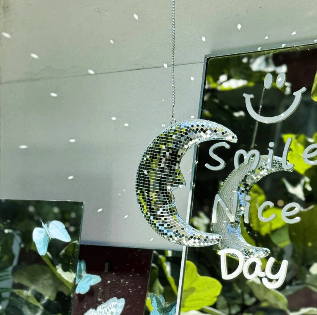 This crescent moon mirrorball is the ultimate �soft girl sparkle ��handcrafted to reflect dreamy light beams across your space like a tiny galaxy. Whether you're revamping your dorm. adding sparkle to your vanity. or curating your coquette shelfie. this mirror moon turns any corner into an aesthetic glow-up. From fairy light reflections to dopamine decor vibes. this piece gives �main character �energy all day and night.