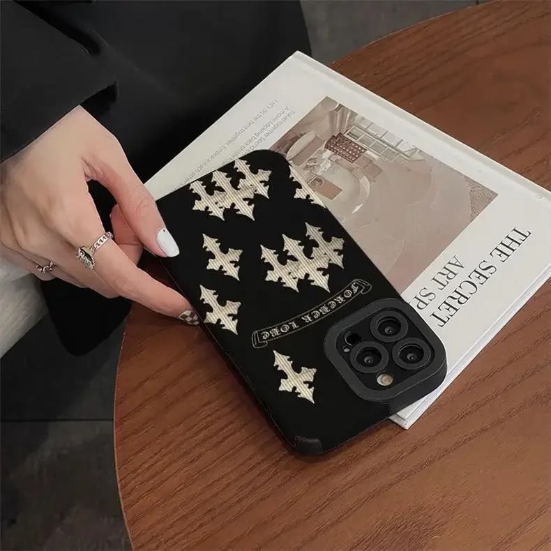 Its cross pattern detail not only serves as a strong aesthetic statement but also ensures a reliable. non-slip grip. Perfect for those who admire gothic and Y2K-inspired accessories. this case makes a striking addition to any style collection. Choose this dark. iconic cover for daily protection with style.