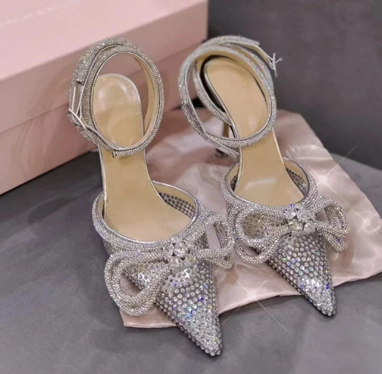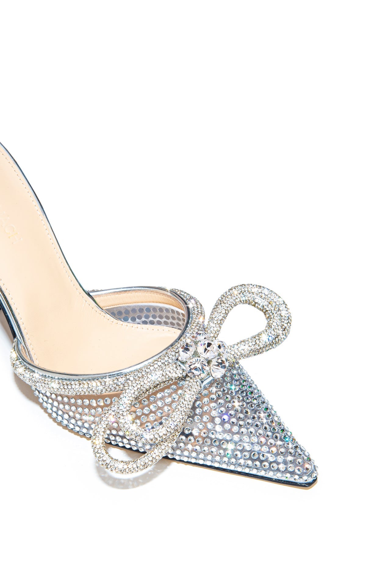 Designed to catch attention. Made from embellished metallic vegan leather. these pumps have wrap-tie ankle fastenings and bow appliqués.