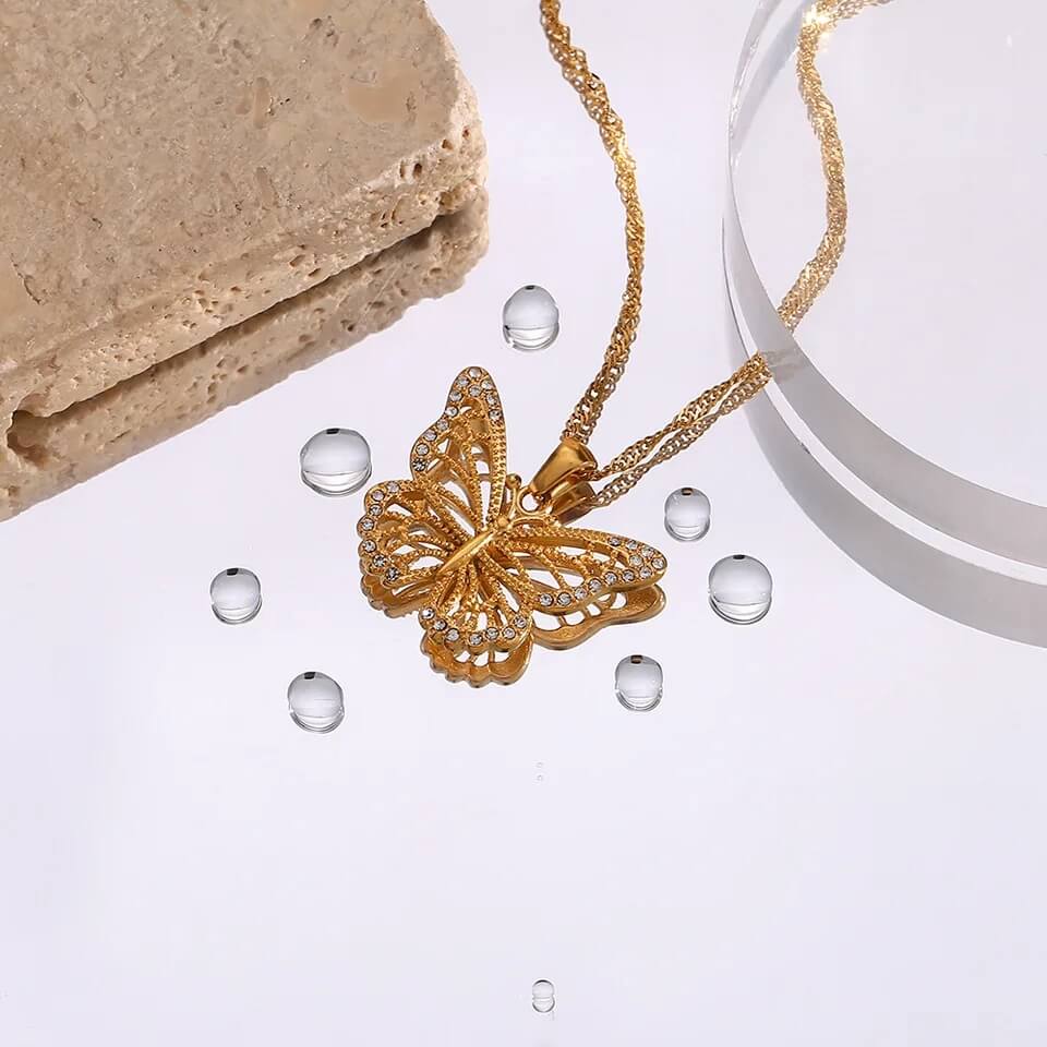 The Dainty Dainty Butterfly Gold Zircon Necklace is crafted with meticulous detail