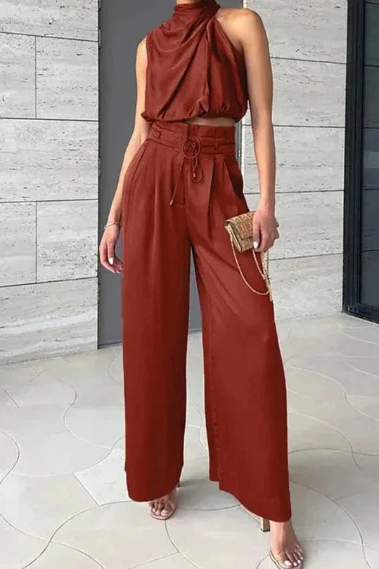 Stay cool and comfortable in this sleeveless top wide leg pants summer set. The sleeveless top allows for easy movement and breathability. while the wide-leg pants provide a relaxed fit that's perfect for those warm summer days.
