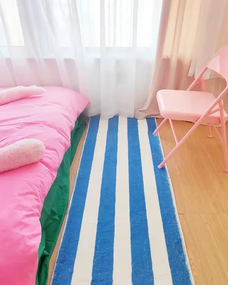 The minimalist striped pattern and vibrant geometric design make it an ideal accent for modern home decor. perfect for both adults and children's rooms. Whether used as a bedside mat or a decorative centerpiece. this large area rug enhances your home's ambiance. Great gift for New Year and Christmas to infuse warmth and comfort into any space.