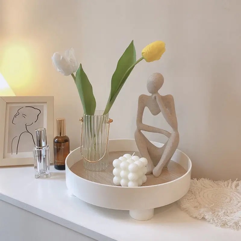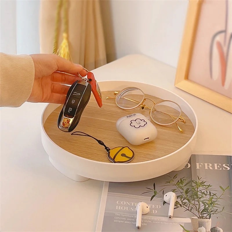 Discover the elegance of Scandinavian design with our Danish Platform Storage Tray. Perfect for organizing jewelry. perfumes. and coffee essentials. this decorative wooden tray adds a sophisticated touch to any room. Its large. round shape and non-slip pad make it ideal for bathrooms. living rooms. or as a coffee table centerpiece.