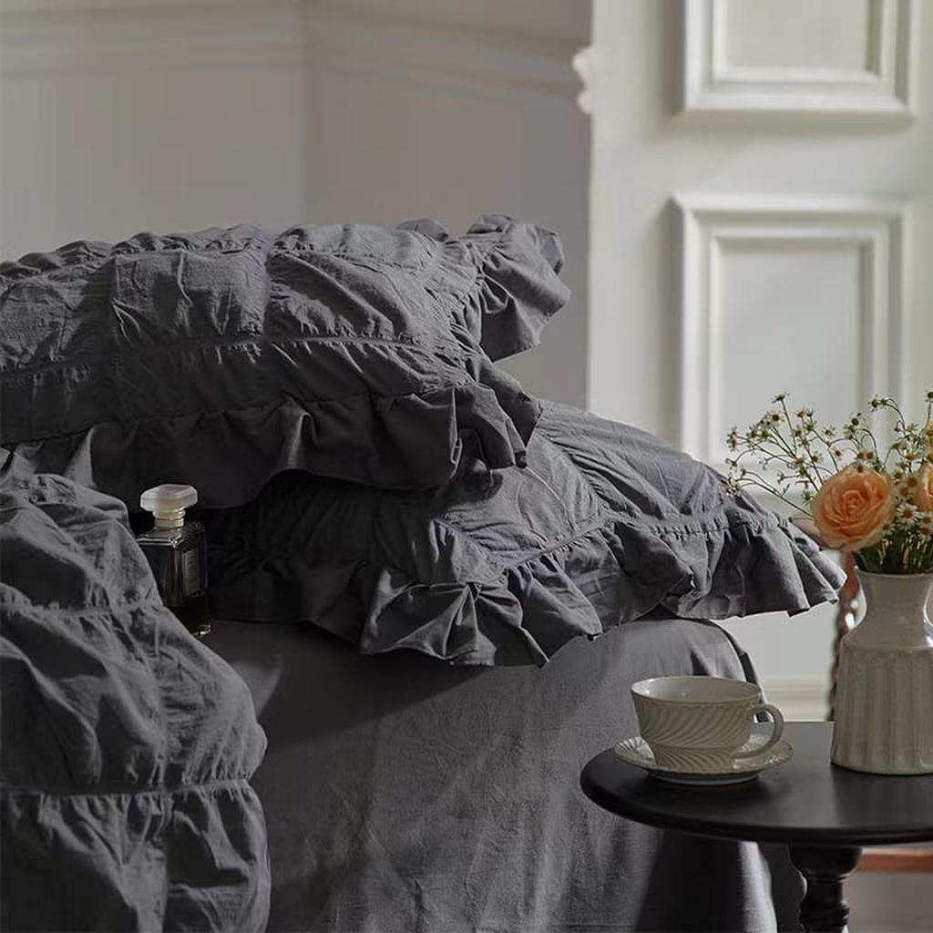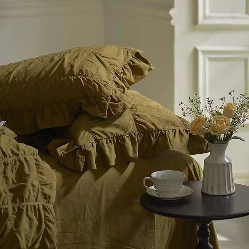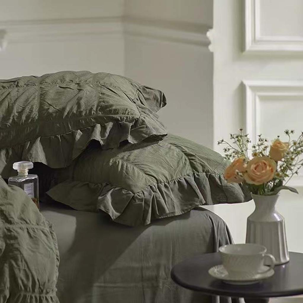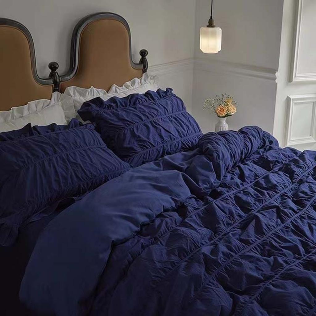 Imagine your bed looking like it's straight out of a classic novel. This set has a deep. rich color and a ruched design that adds a touch of old-school charm. It's perfect if you love a bit of vintage flair and want your bedroom to feel extra cozy and stylish.