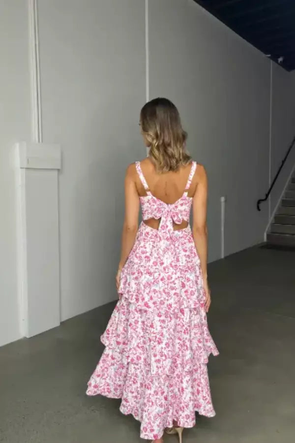 The Maxi Dress is next level elegance and class. The perfect maxi for a wedding guest. your next vacay or Sunday brunch! Comfortable yet flattering this will be your go to floral maxi. this dress drapes beautifully. creating a flattering silhouette that moves gracefully with every step.