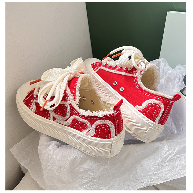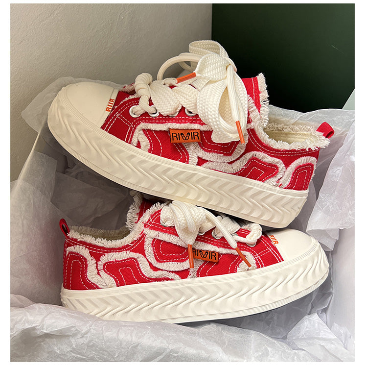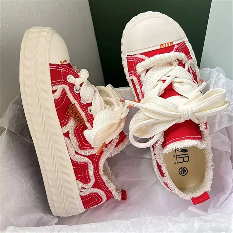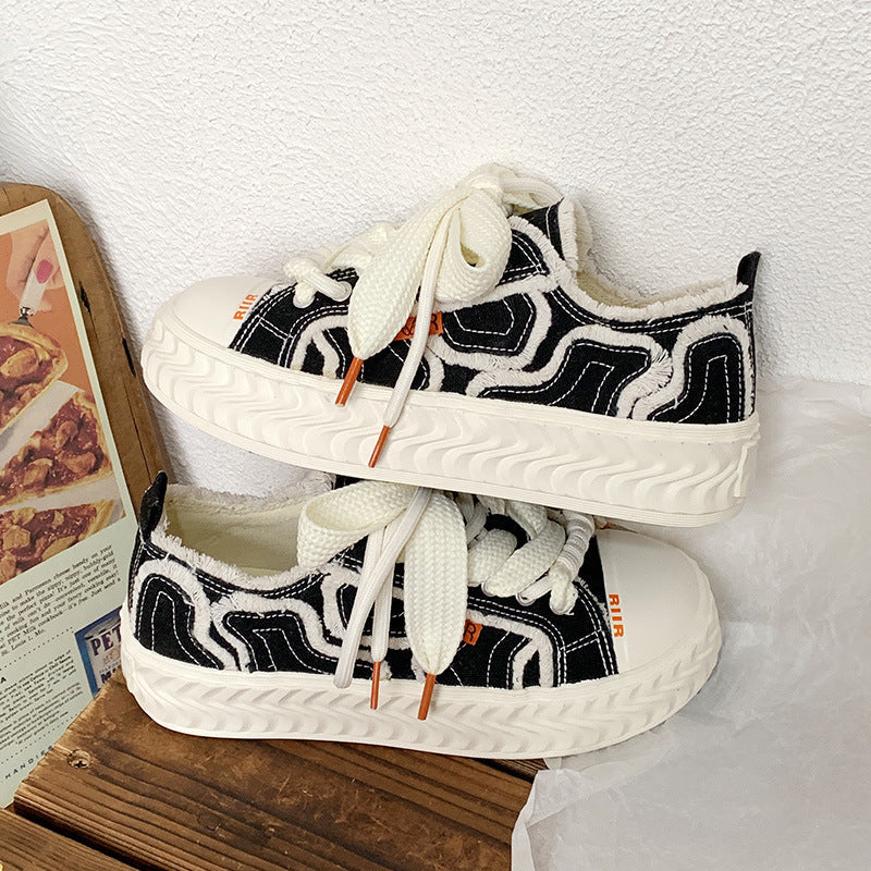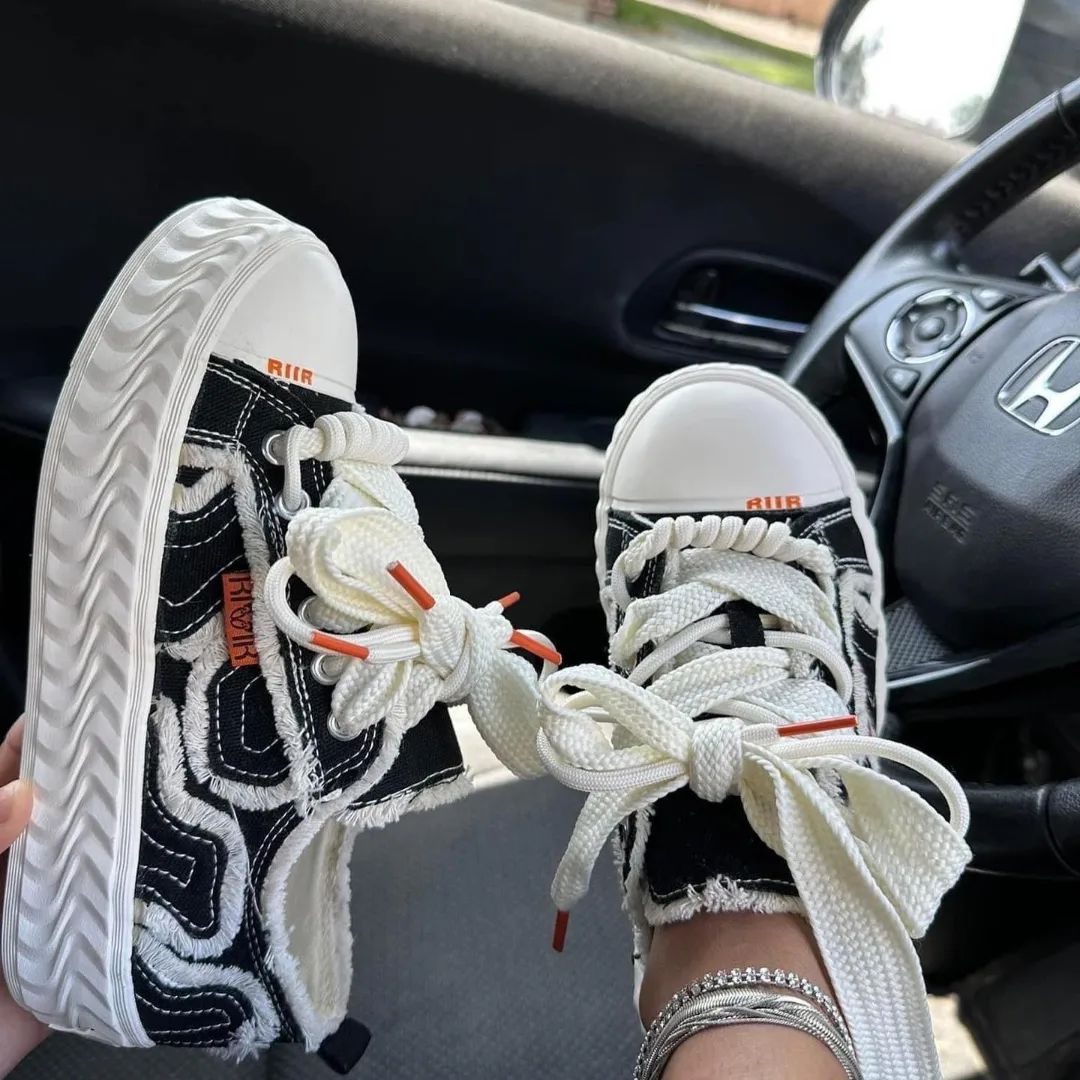 These eye-catching sneakers feature a distressed pattern design that exudes fashion-forward aesthetics.