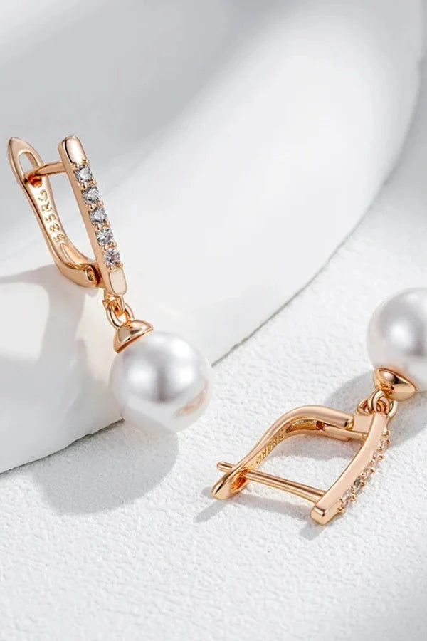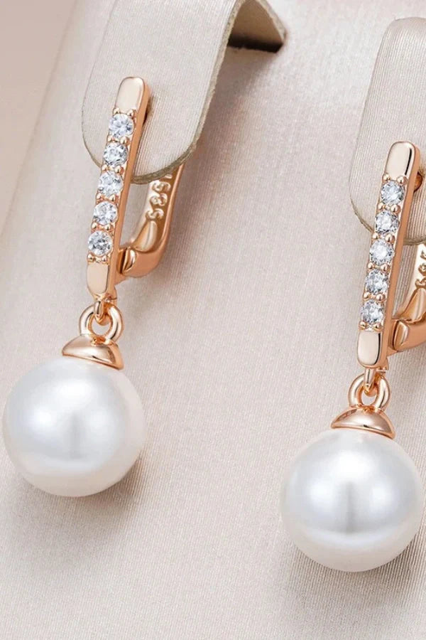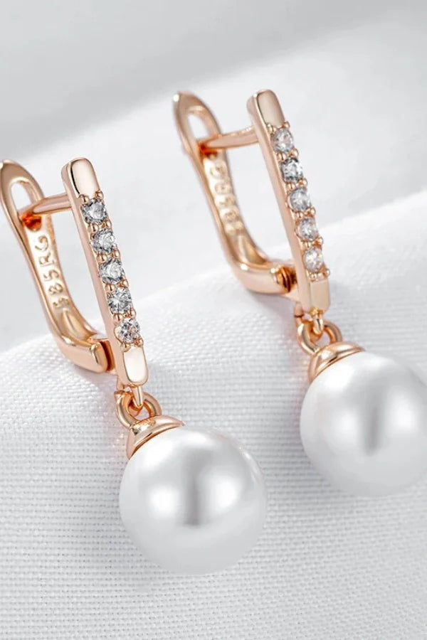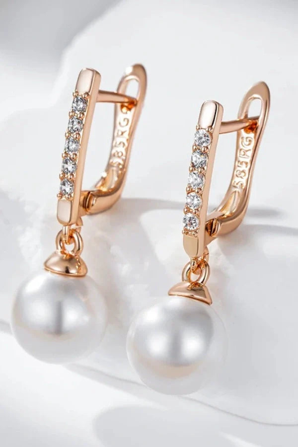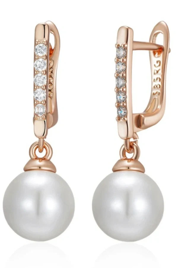Elysia earrings are a stunning blend of luxury and elegance. crafted in 585 rose gold color with lustrous pearls and sparkling natural zircons. These unique. fine jewelry pieces are perfect for brides seeking a sophisticated touch on their special day. exuding timeless beauty and charm.