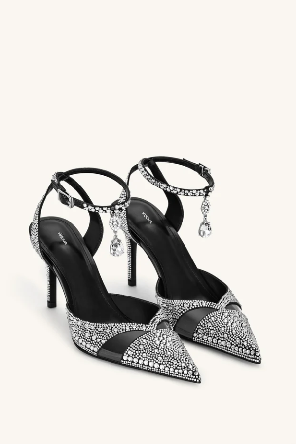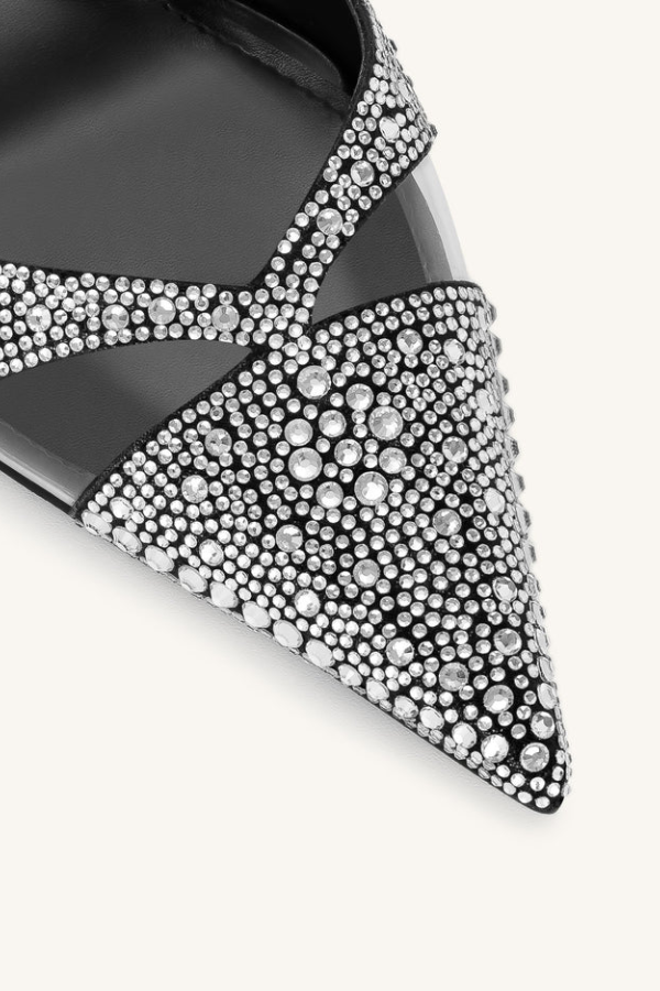 Elevate your look with these stunning high heels. crafted from a unique shimmering sandpaper and TPU upper that adds a touch of sparkle and texture. Lined with soft vegan leather. these heels offer both style and comfort for any occasion. The design is accented with silver hardware. adding a hint of sophistication and modern flair. With a 3.35-inch (8.5 cm) heel height. they provide an elegant lift without compromising on stability. The rubber sole ensures a secure grip. making these high heels as practical as they are stylish �the perfect choice for turning heads at any event.