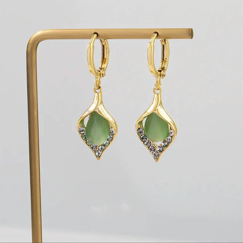 Indulge in the refined elegance of this exquisite opal earring. The stunning opal gemstone. in all its natural beauty. is delicately encased in a sterling setting.