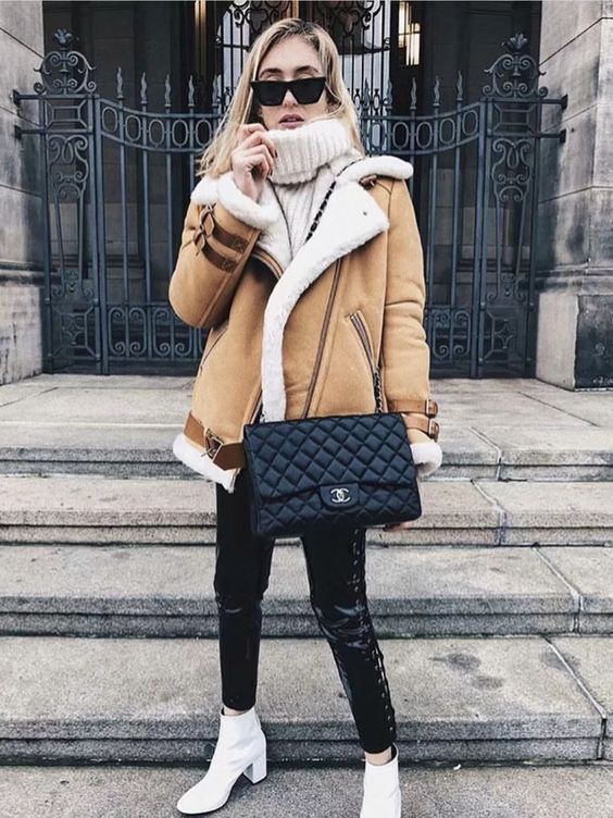 Design: Turn-down Turtle Neck White Fur Collars. Full Lined Shearling. Full Zipper. Long Sleeves. Moto & Bike style. Oversized and Bomber