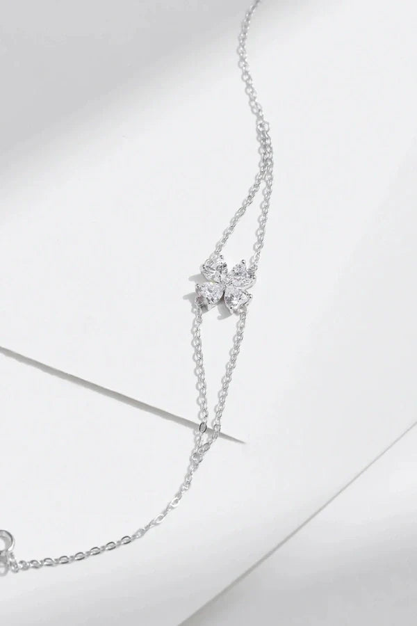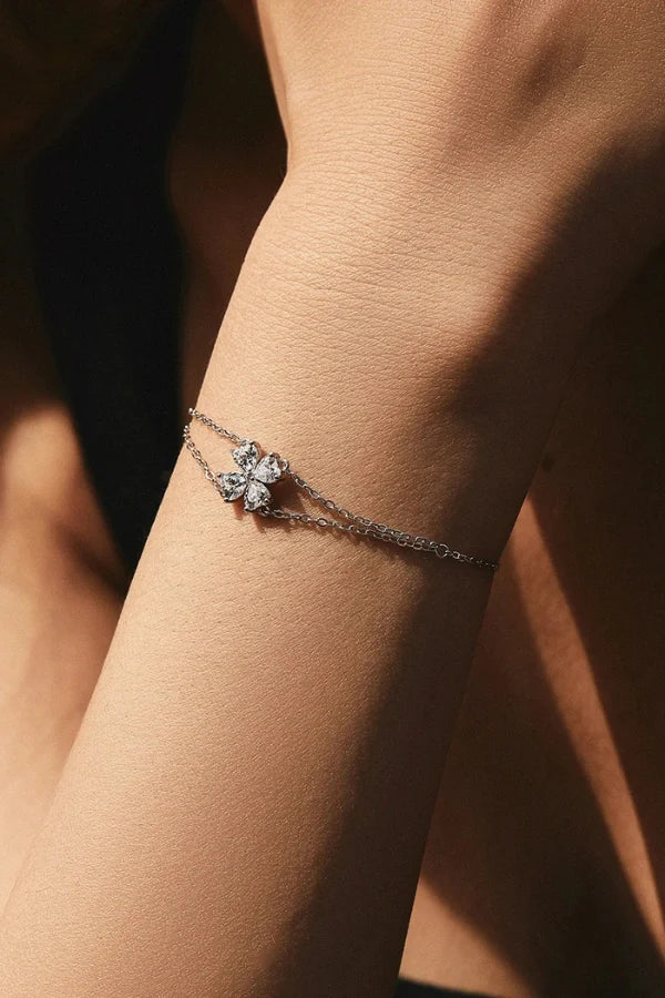 The Floral Heart Harmony Bracelet is a romantic and luxurious accessory designed to captivate. Made from sterling silver. this double-layer bracelet features an intricate design of flowers and hearts. adorned with sparkling cubic zirconia stones. The adjustable chain link ensures a comfortable and versatile fit. making it perfect for any occasion. Whether as a gift or a personal treasure. this bracelet embodies elegance and charm. adding a touch of romance to your jewelry collection.