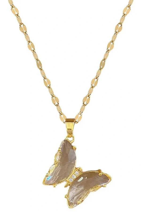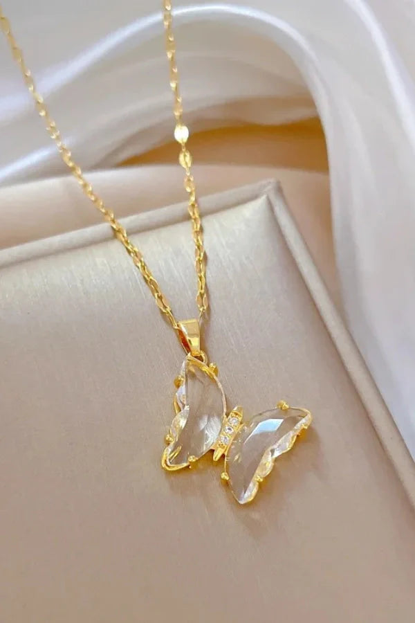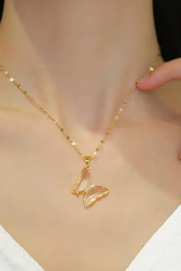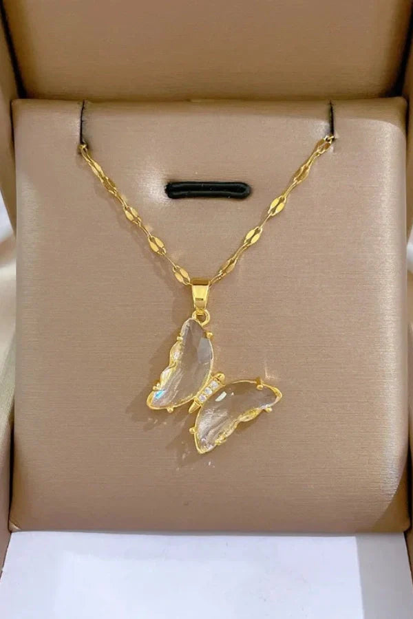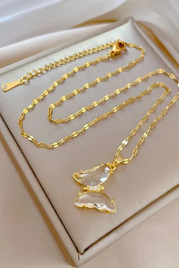 The Fluttera Stainless Steel Butterfly Crystal Pendant Necklace for Women and Girls is a stunning blend of elegance and nature-inspired beauty. Crafted from high-quality stainless steel. this necklace features a delicately designed butterfly pendant adorned with shimmering crystals that add a touch of luxury and sparkle. The graceful wings of the butterfly symbolize transformation and freedom. making this necklace a meaningful accessory for any occasion. Perfect for parties. gifts. or everyday wear. the Fluttera necklace offers a stylish and trendy look that enhances any outfit with its radiant charm.