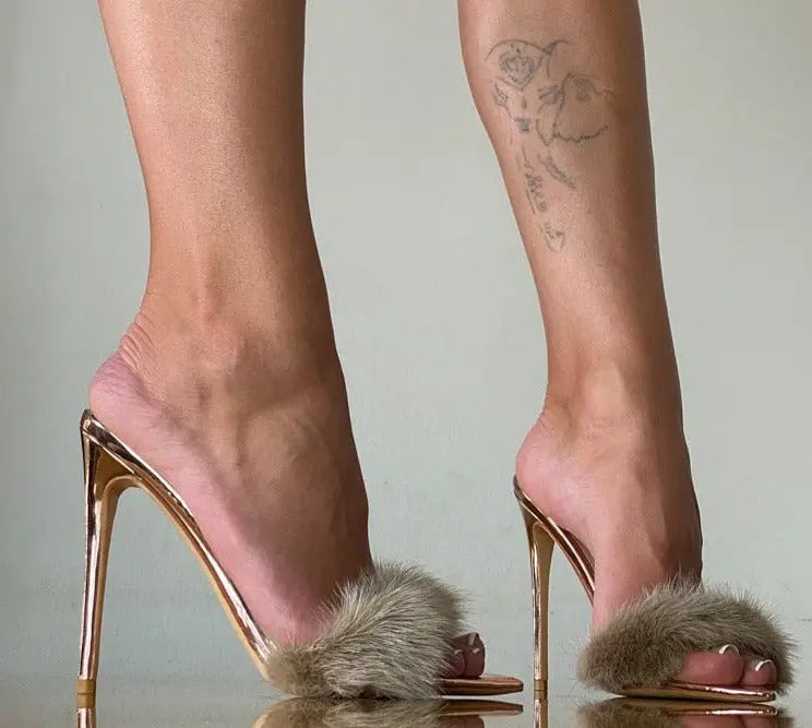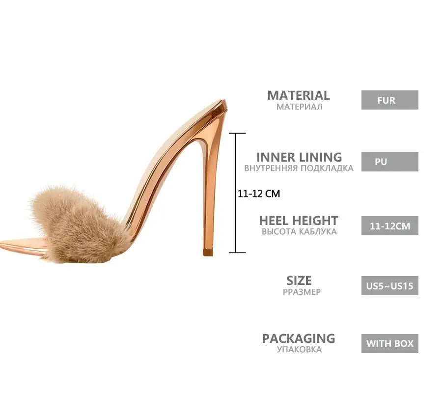 Furry Thin High Heeled Peep Toe Sandals Details:
