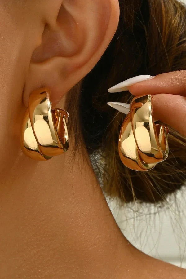 These stunning Gold Geometric Double Hoop Chunky Earrings are a perfect blend of modern style and bold elegance. Crafted from high-quality stainless steel. the earrings feature a thick. double-ring design that adds a striking. geometric touch. The polished gold color enhances their luxurious appeal. making them a versatile statement piece for both casual and formal occasions. Ideal for women and girls who love making a fashionable impact. these earrings are a thoughtful gift that exudes sophistication and charm.