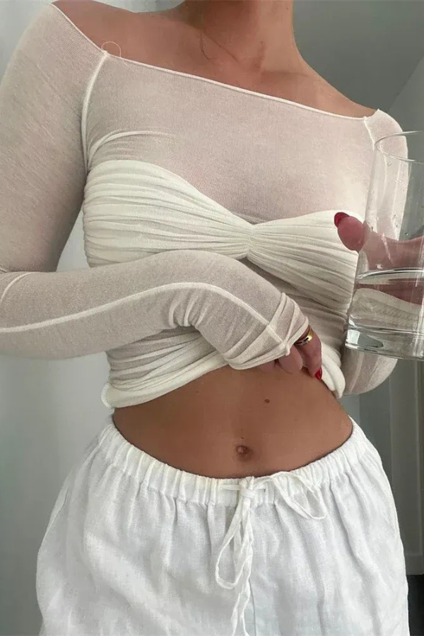The Gleysdi Mesh Shoulder Top is a modern. edgy. and fashionable piece that combines the best of classic style with a contemporary twist. Featuring a striking mesh shoulder design. this top adds a touch of sophistication and drama to any outfit. making it a must-have for fashion-forward women who love to stand out.