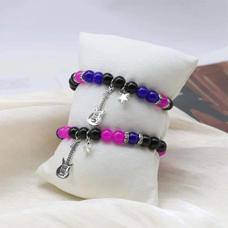 The two beautifully crafted bracelets are adorned with guitar and star charms perfect for friends with a unique bond.