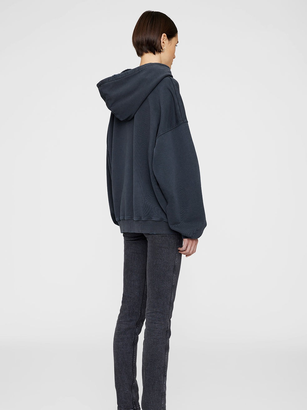 It has subtle grinding along the edges of its hood. sleeve cuffs. and waistband for a vintage-inspired look.