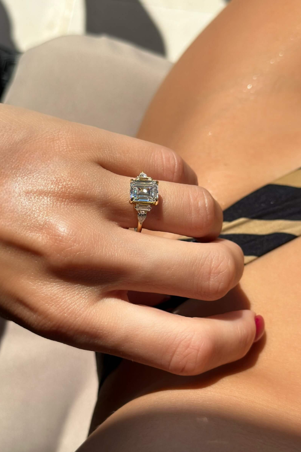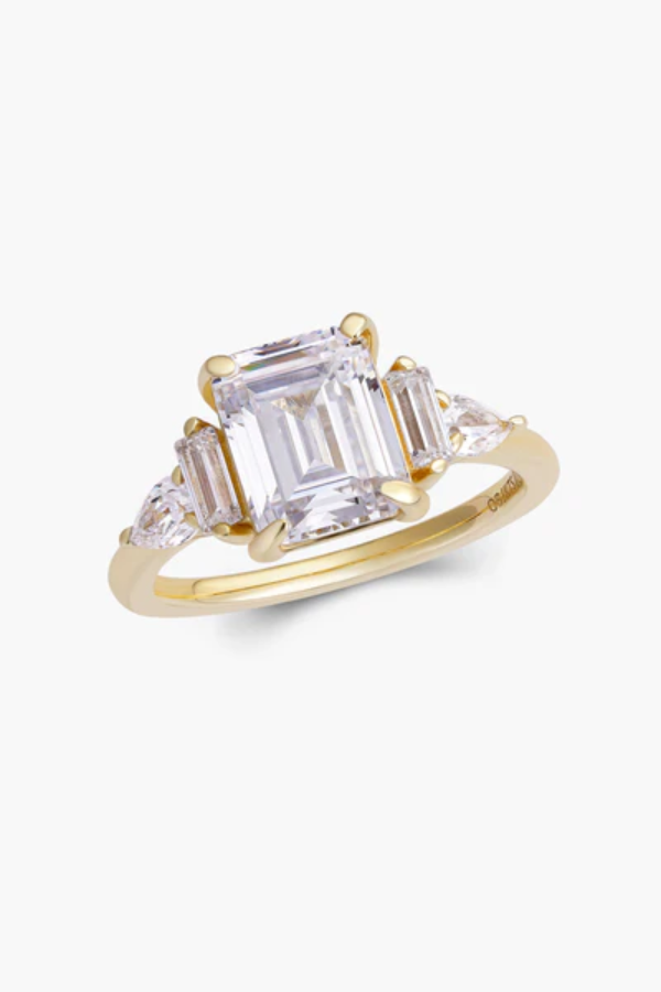 Experience the stunning allure of the Hattie Ring! Featuring a beautiful emerald-cut centerpiece surrounded by a dazzling array of additional stones. this ring radiates elegance and sophistication. It's the perfect choice for those who cherish timeless and classic jewelry. Make a statement with the Hattie Ring!