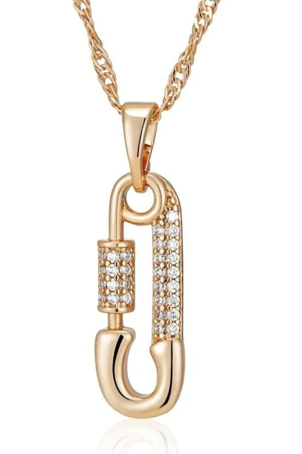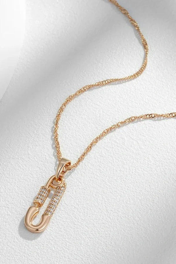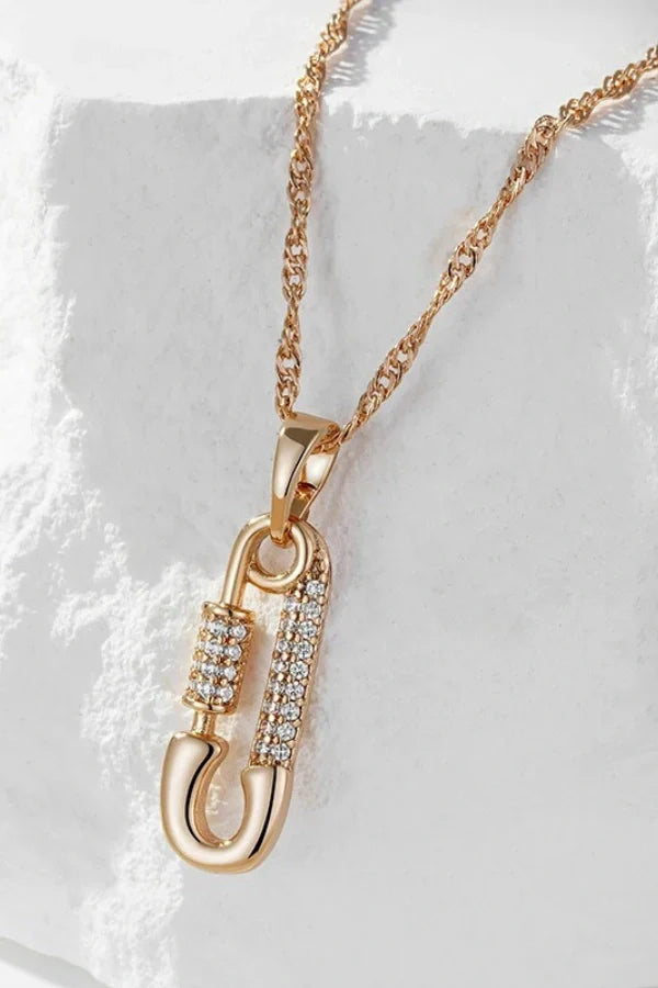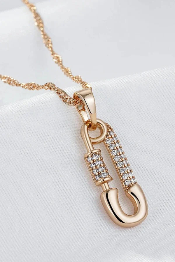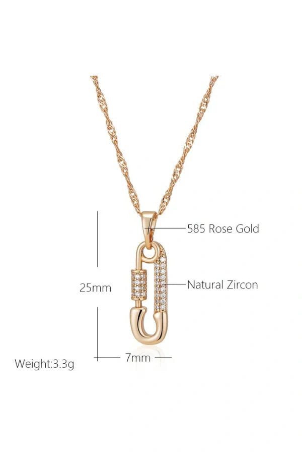 The Helena Rose Gold Color Pin Shape Pendant Necklace is a modern and stylish piece. perfect for everyday elegance. Designed in a unique pin shape. this pendant features a sparkling natural zircon stone set in a rose gold color finish. adding a touch of sophistication and personality. Lightweight and versatile. it's ideal for daily wear. making a subtle yet eye-catching statement with any outfit.