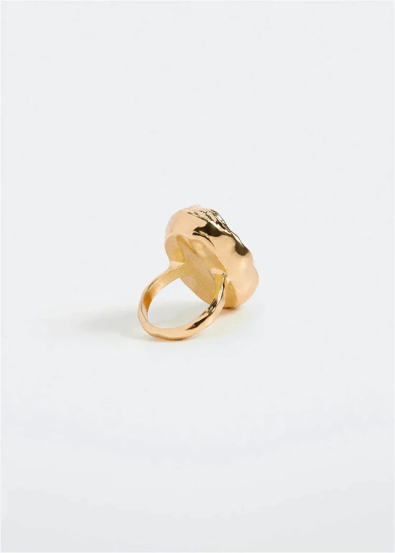 The exclusively irregular pearl-shaped ring is a golden-hue ring embellished with faux pearl.