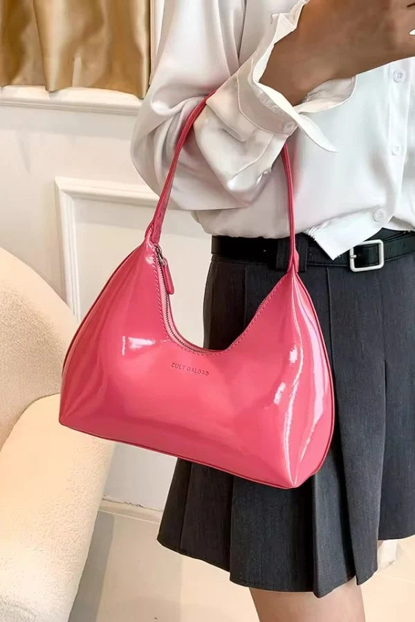 Make a statement with the Jayda Patent Bag. This chic tote bag features a sleek patent finish in a rich different hue. adding a touch of luxury to any outfit. Its spacious interior and comfortable shoulder straps make it perfect for carrying all your essentials. from your laptop to your everyday necessities. Whether you're heading to the office. running errands. or enjoying a night out. the Jayda Patent Bag is the perfect blend of style and functionality.
