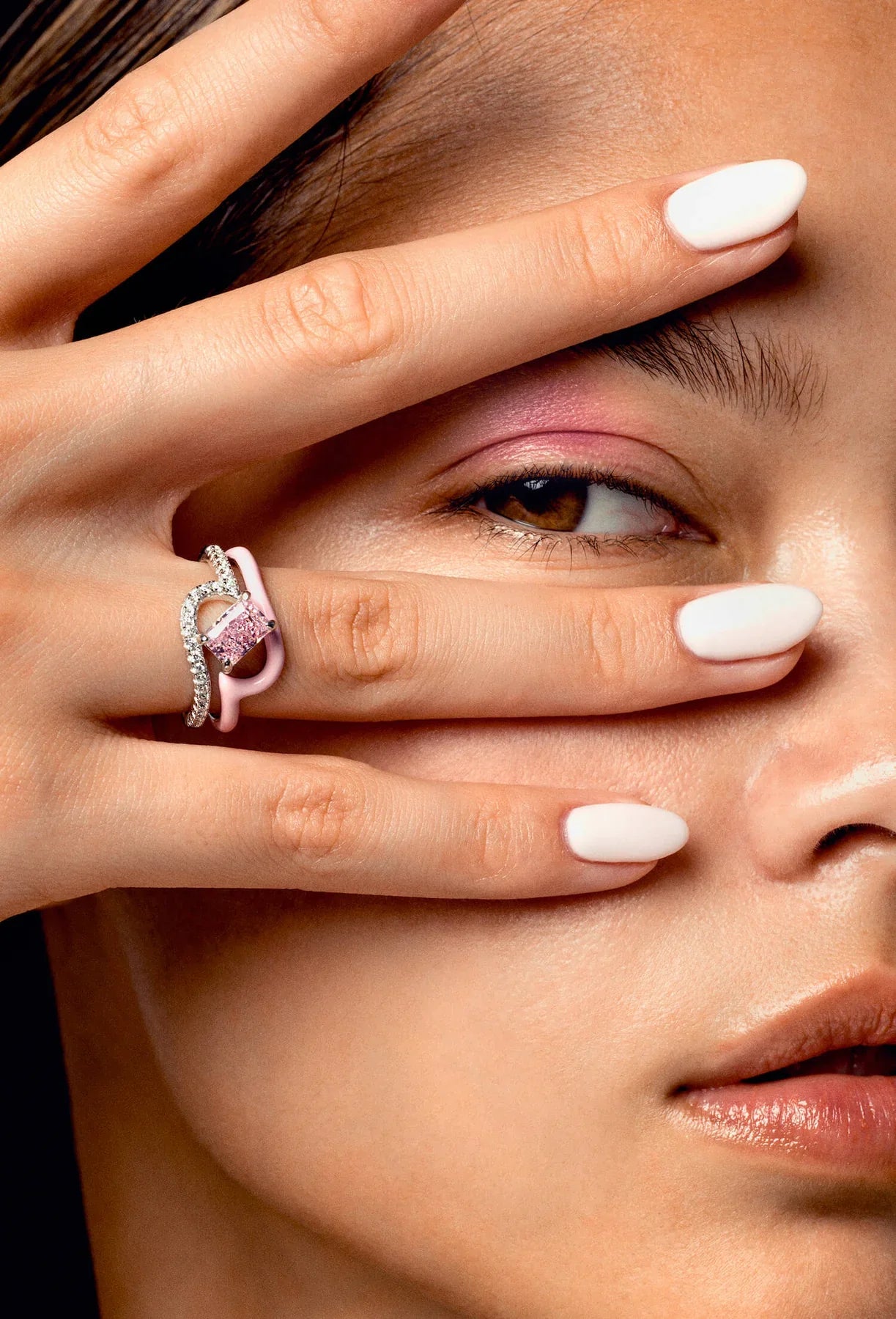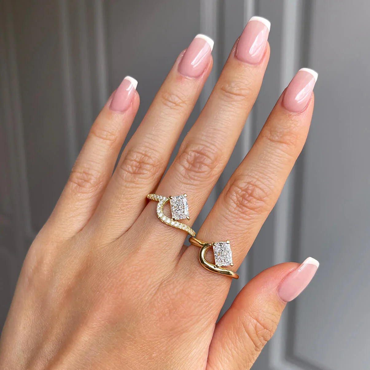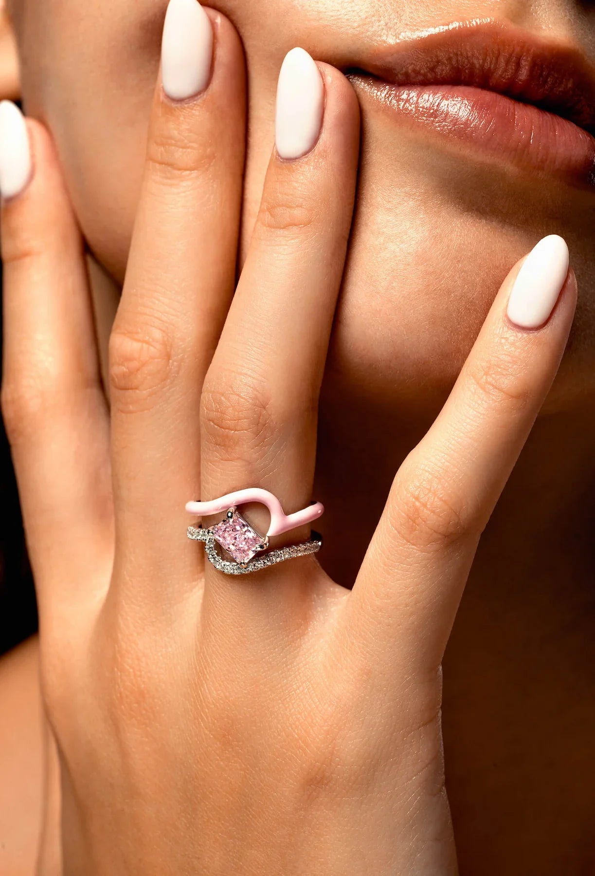 Our stunning Jennie Ring is a standout piece from this collection. radiating unique charm and undeniable allure. Available in Plain. Pave. or Enamel. you can choose the style that best suits you. With its shimmering Radiant Crushed Ice stone. you'll sparkle just like the ocean waves.